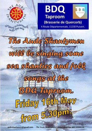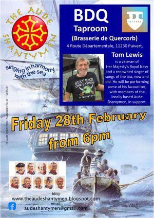Starting the year with a guest appearance of the renowned shanty singer and sahnty song writer, Mr Tom Lewis, at BDQ in Puivert, we were to do a follow-up gig there in May.