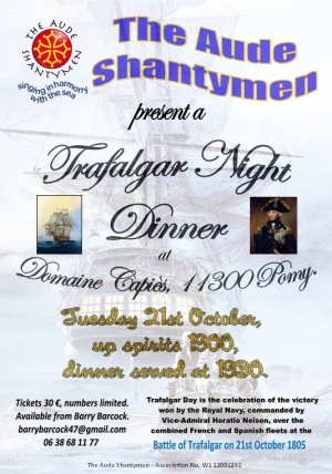 We conceived a Trafalgar Night event in October, to commemorate the death of Lord Nelsonat teh Battle of Trafalgar, an event that was sold out and hopefully repeated next year.